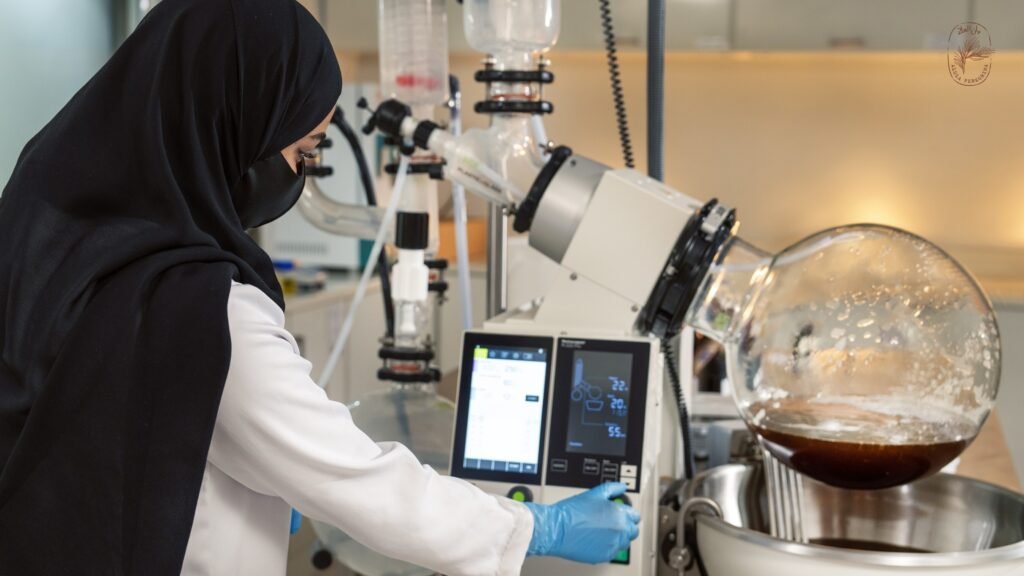 Die Rohstoffe für AlUla Peregrina™ werden in einem ISO 9001-zertifizierten Labor in AlUla verarbeitet.